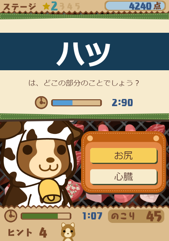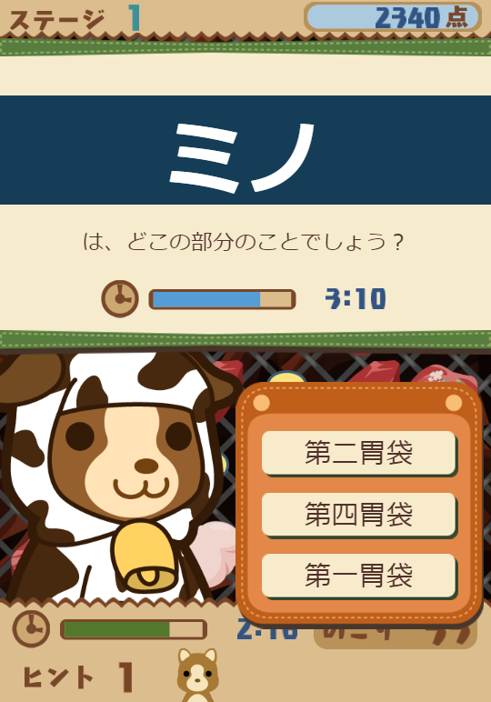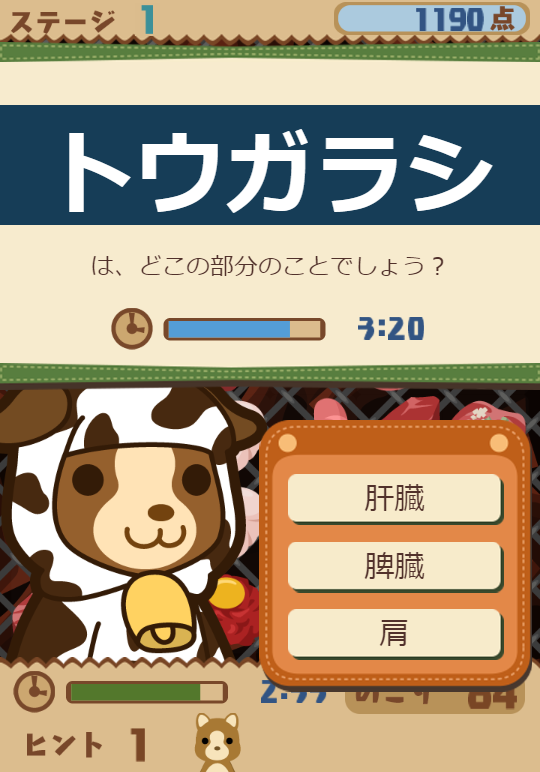 出題される部位は、初級レベルの「レバー」「ハツ」、中級レベルの「ミノ」「ハチノス」、そして「シビレ」「タケノコ」などマニアックなものまで多種多様。