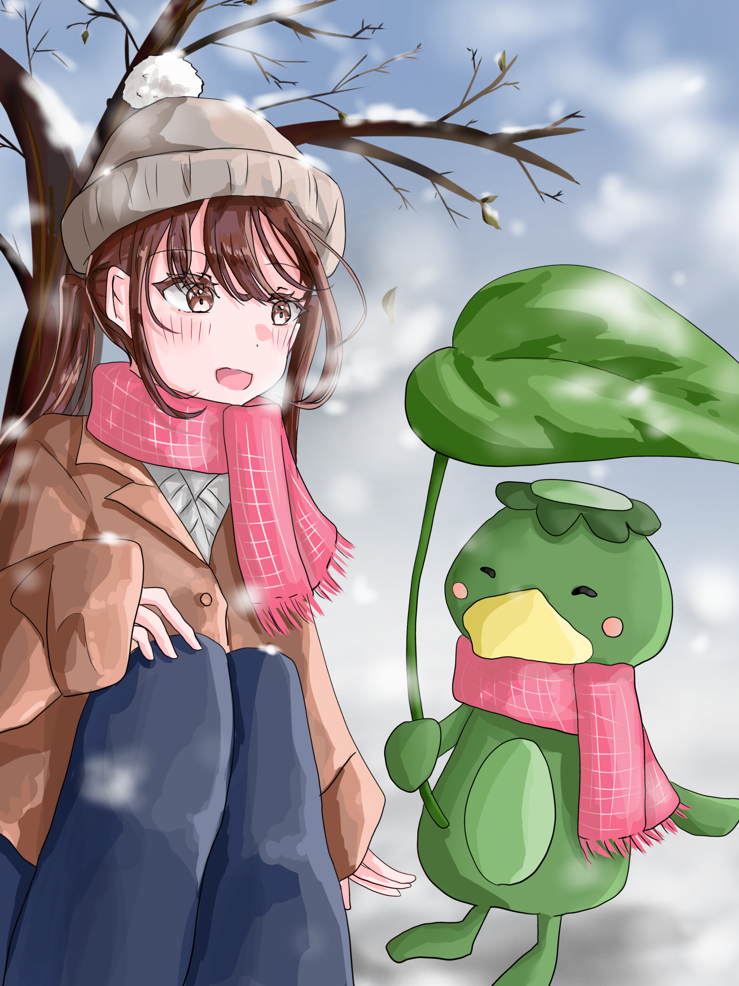 カッパさんが寒くないように、お揃いのマフラーを着けてみたんだ♪