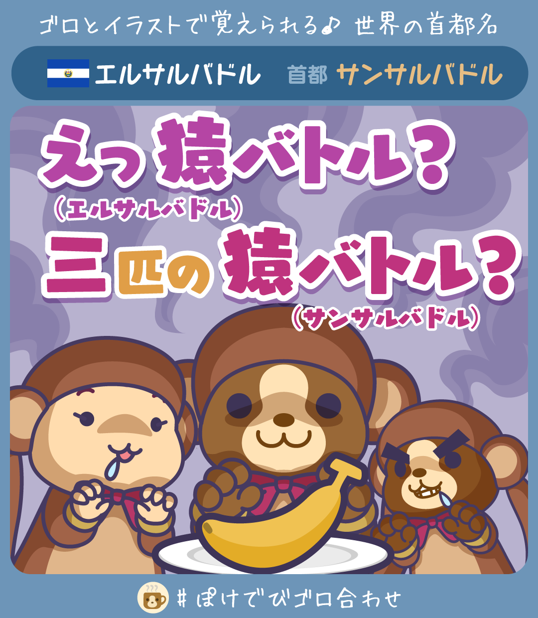 「えっ、猿バトル三匹の猿バトル」覚えやすいです!今回のイラストも