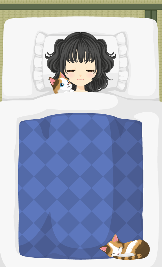 1つ目は、「居眠り猫さん」です!布団の上でアバターと一緒に寝ている
